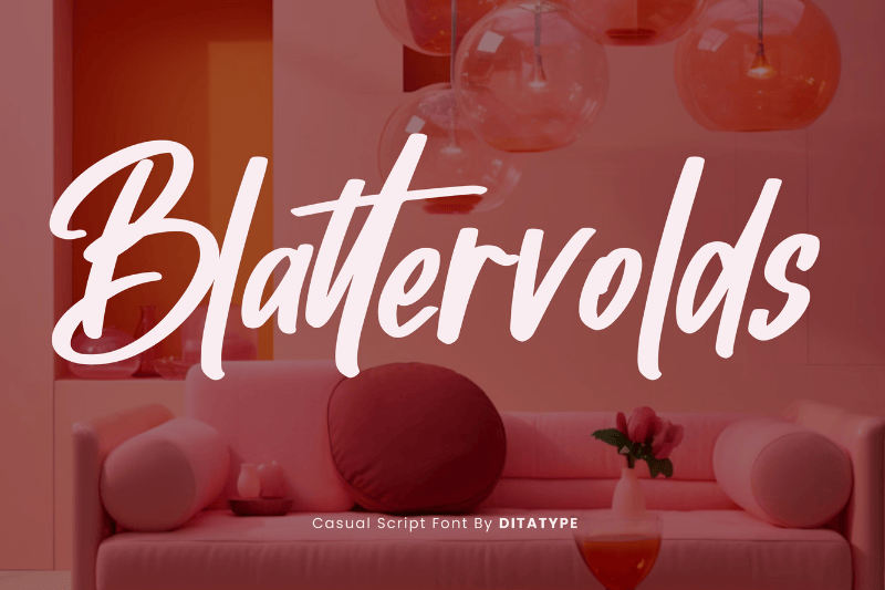 If most casual script fonts highlight a soft and feminine side, Blattervolds instead presents a more dynamic and expressive character. This font features letterforms resembling handwriting with bold brush strokes, dynamic stroke contrasts, and freely flowing letter details. Its uniqueness lies in its ability to blend a casual impression with expressive visual strength, making it ideal for use in logos, posters, or designs that want to stand out boldly.