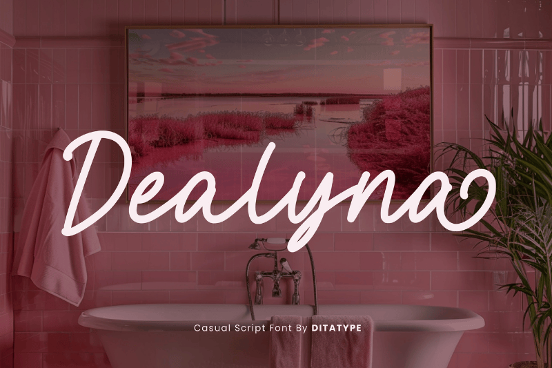 The next one is Dealyna. Dalina is another casual script font with a monoline style that highlights a smooth, orderly, and elegant appearance. This font is designed to bring a warm yet professional feel to various design projects. The uniqueness of Dealyna lies in its flexibility, as it easily blends with various design styles without losing its modern and warm character. Dealyna works perfectly for logos, invitations, product packaging, or promotional materials.